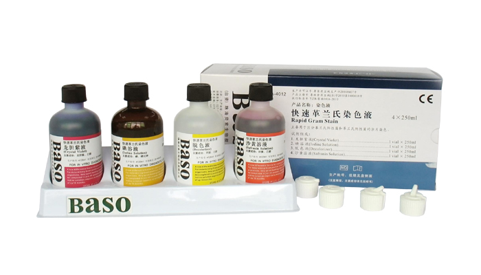 Gram stain was devised empirically by Christian Gram, a Danish physician, in 1884. When bacteria are stained with certain basic dyes (such as the crystal violet in Rapid Gram Stain), those cells with high peptidoglycan contents (Gram-positive) in their cell wall will resist decolorization with organic solvents such as ethanol or acetone, while the Gram-negative species (with a thin layer of peptidoglycan in the cell wall) can be easily decolorized.