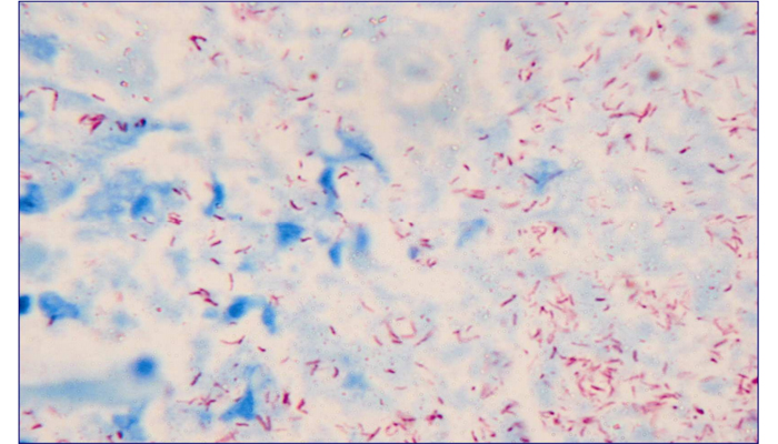 When the acid-fast bacteria are stained by fluorescent dye Auramine O, bright orange-yellow fluorescence can be easily detected by UV-fluorescence microscope under low magnification. It is faster to screen acid-fast bacteria using this fluorescence kit than the Carbolfuchsin stain.