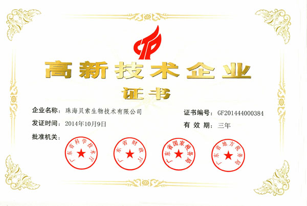 近日,廣東省科學(xué)技術(shù)廳、廣東省財(cái)政廳、廣東省國(guó)家稅務(wù)局和廣東省地方稅務(wù)局聯(lián)合下發(fā)了《關(guān)于公布廣東省2014年第一、二批通過(guò)復(fù)審高新技術(shù)企業(yè)名單的通知》(粵科高字[2015]31號(hào))文件,珠海貝索生物技術(shù)有限公司順利通過(guò)高新技術(shù)企業(yè)復(fù)審(證書(shū)編號(hào):GF201444000384)并重獲頒牌。